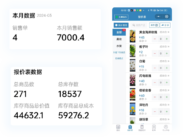 全面支持商品图片对应,成本、库存、图片、点式开单集中管理更简约方便